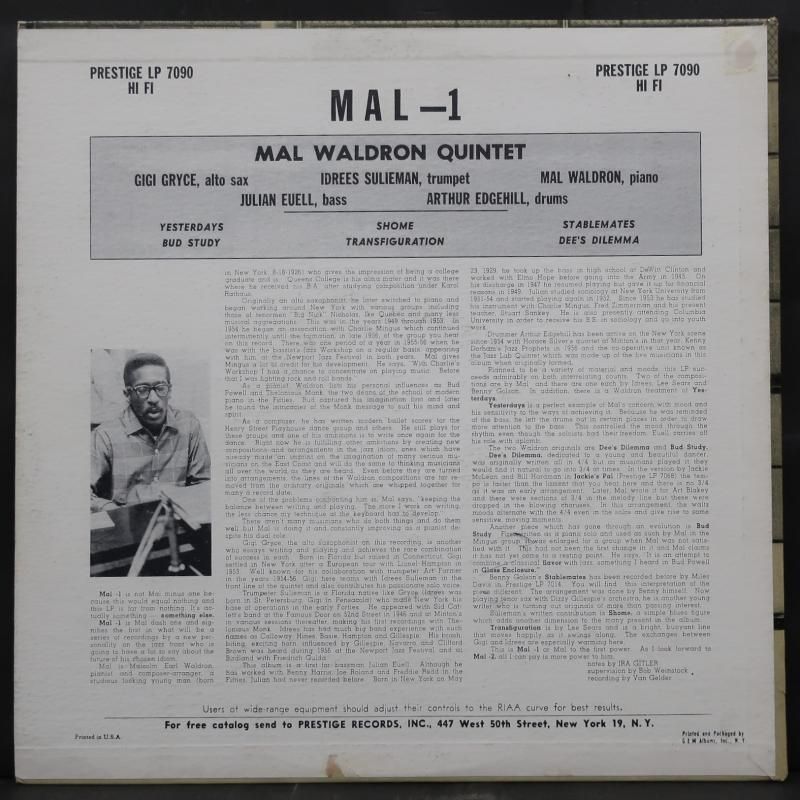 MAL WALDRON オリジナル PRESTIGE "MAL-1"