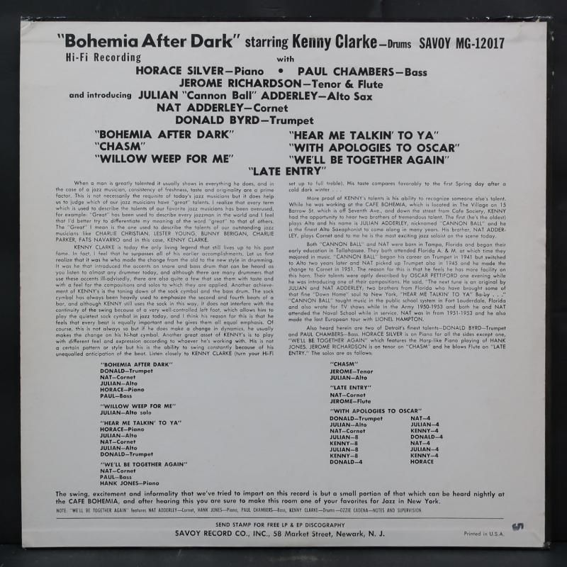 KENNY CLARKE 準オリジナル SAVOY "BOHEMIA AFTER DARK"
