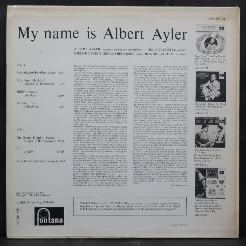 ALBERT AYLER オリジナル デンマークDEBUT "MY NAME IS"