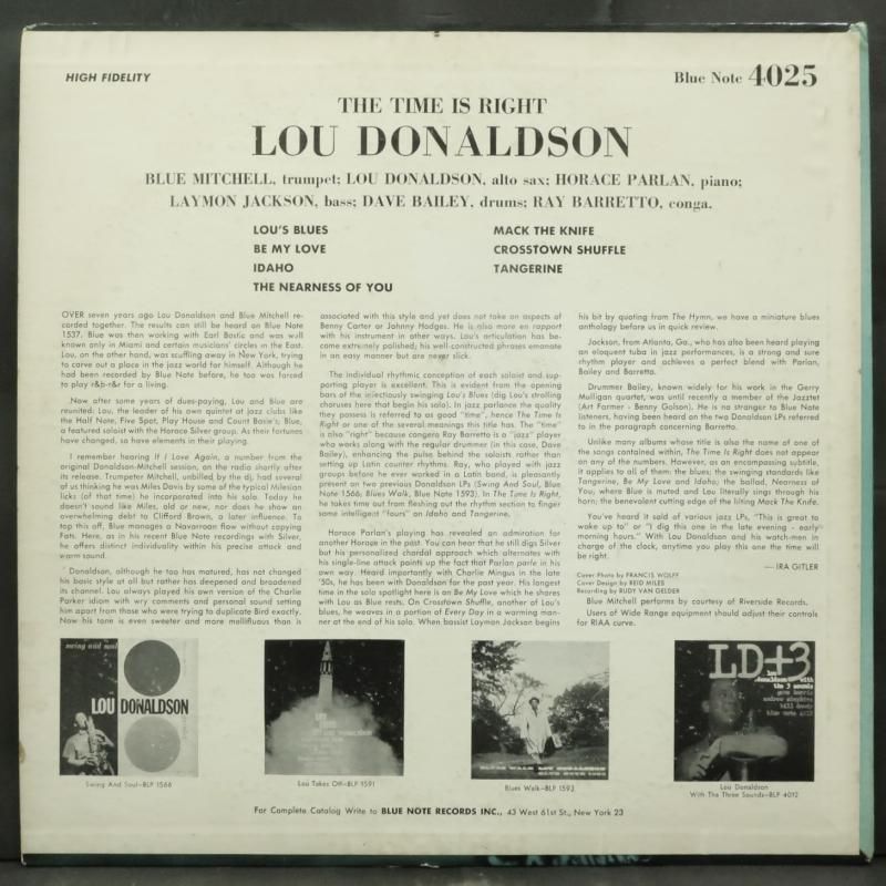 LOU DONALDSON オリジナル BLUE NOTE "THE TIME IS RIGHT"
