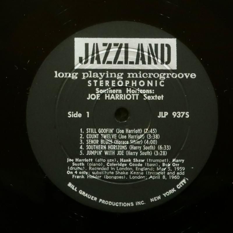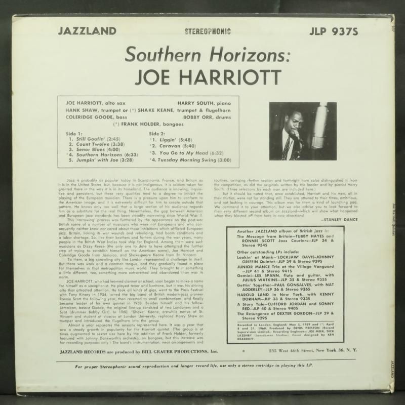JOE HARRIOTT オリジナル JAZZLAND "SOUTHERN HORIZONS"