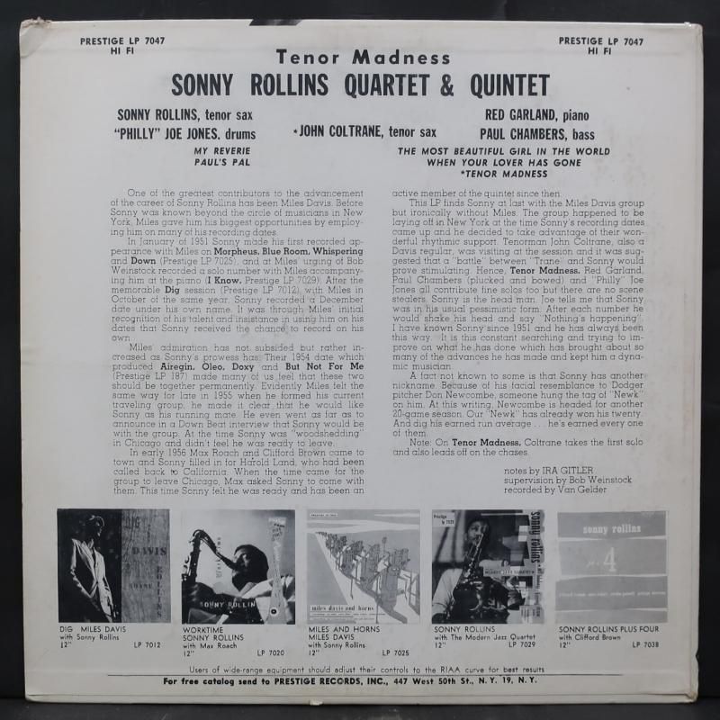 SONNY ROLLINS オリジナル PRESTIGE "TENOR MADNESS"