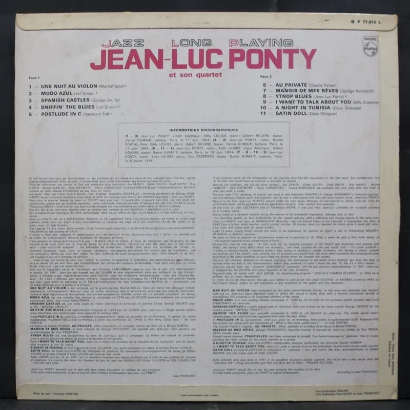 JEAN-LUC PONTY オリジナル 仏PHILIPS "JAZZ LONG PLAYING"