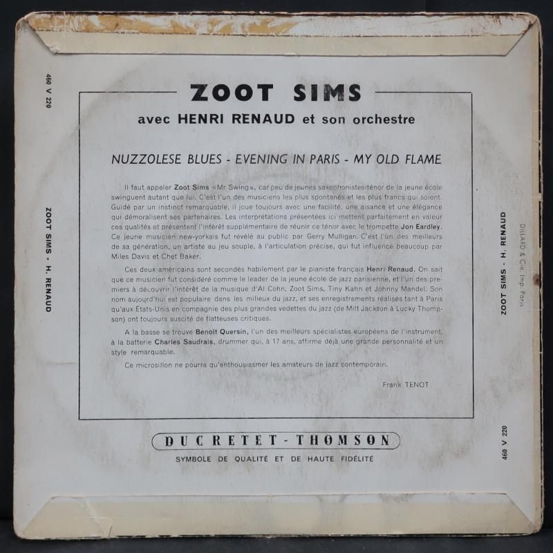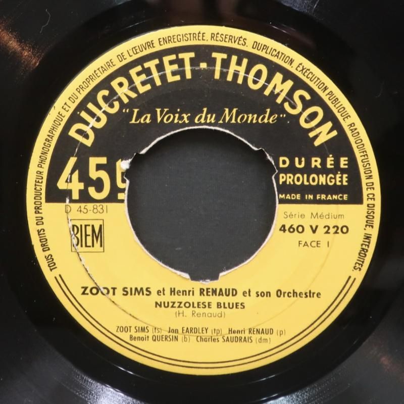 ZOOT SIMS オリジナルEP 仏DUCRETET-THOMSON ”AVEC HENRI RENAUD”