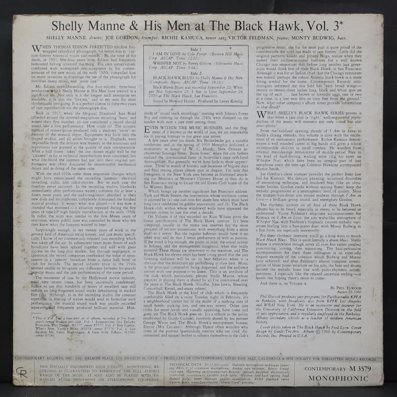 SHELLY MANNE オリジナル CONTEMPORARY "AT THE BLACK HAWK, VOL. 3"