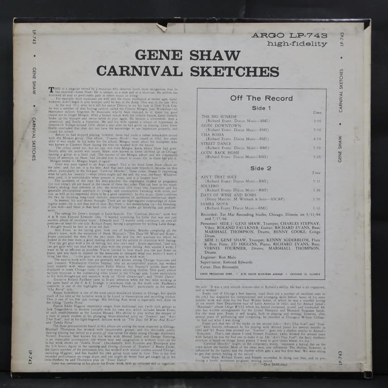 GENE SHAW オリジナル ARGO "CARNIVAL SKETCHES"