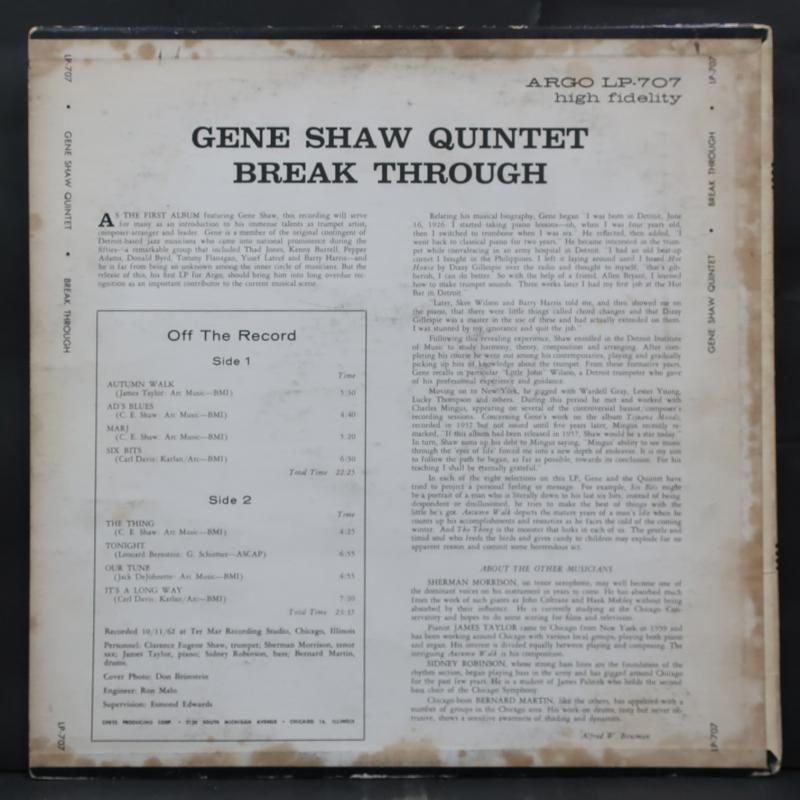 GENE SHAW オリジナル ARGO "BREAK THROUGH"