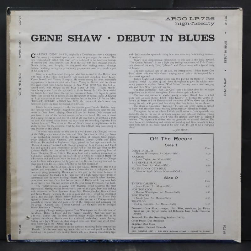 GENE SHAW オリジナル ARGO "DEBUT IN BLUES"